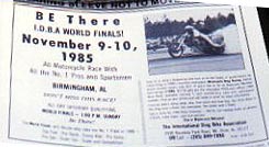 Birmingham, AL WORLD FINALS in 1985. Scott and I drove to this race just to watch. At the time Scott had it in his head that some day he would be on the track racing. I thought it was only a dream...