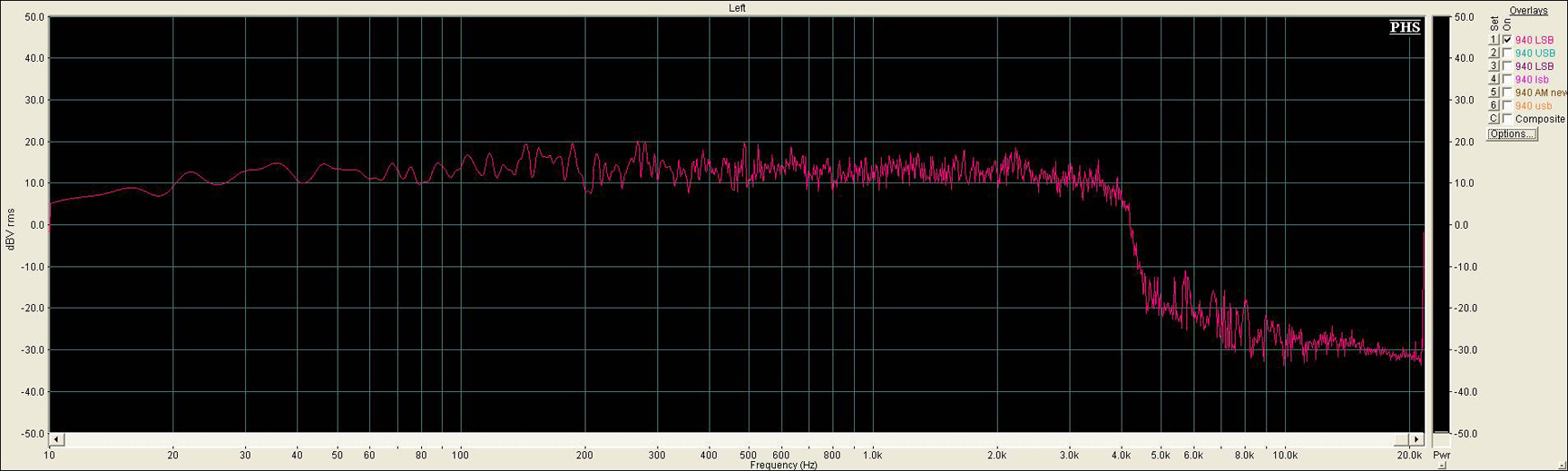 I worked with John (NU9N) on 160M and confirmed the response detailed above. Additionally, John listened for carrier and opposite sideband surpression problems. John's comment is that the 940 is performing at a level he considers to be the best possible considering it's analog. Very minimal opposite sideband bleed over and no carrier.