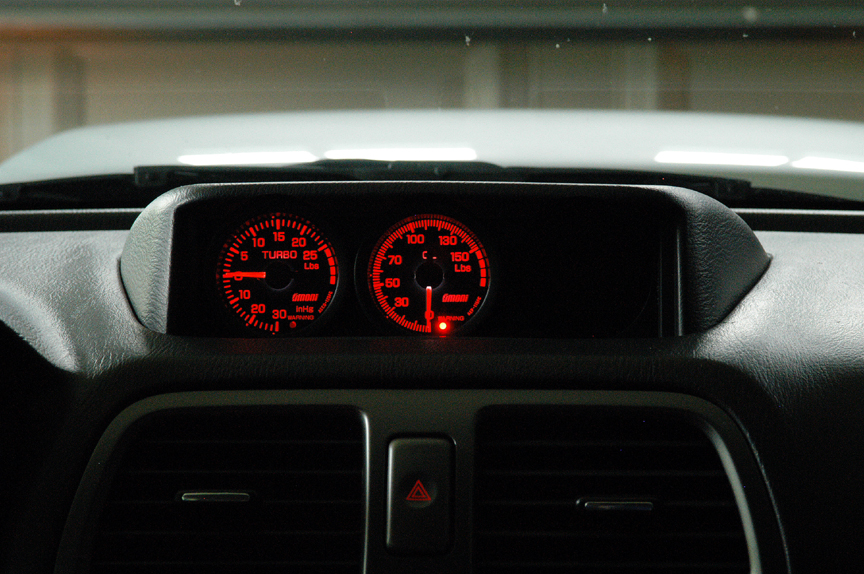 Below is the completed gage package, Omori Boost & Oil Pressure and Innovate Motorsports XD-1 Wide Band Air / Fuel Ratio
